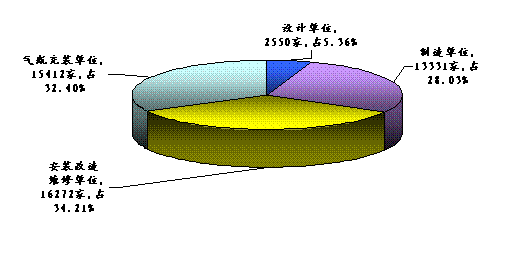 我國現(xiàn)有特種設(shè)備生產(chǎn)(含設(shè)計、制造、安裝、改造、維修、氣瓶充裝)單位47565家,持有特種設(shè)備許可證48508張,單位數(shù)比2008年增加 12%。