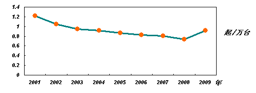 2001年至2009年萬臺設(shè)備事故起數(shù)趨勢圖