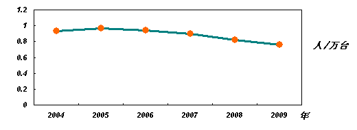 2004年至2009年萬臺設(shè)備事故死亡人數(shù)趨勢圖