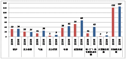 事故起數(shù)增加主要原因是新修改的《特種設(shè)備安全監(jiān)察條例》將沒有人員傷亡的鍋爐、壓力容器、壓力管道爆炸、有毒介質(zhì)泄露導致人員轉(zhuǎn)移、客運索道、大型游樂設(shè)施高空滯留人員、電梯轎廂滯留人員、起重機械整體傾覆等情況定義為事故,另外將場(廠)內(nèi)專用機動車輛納入條例調(diào)整范圍,擴大了事故范圍和統(tǒng)計口徑,導致事故起數(shù)較大幅度上升。若以事故死亡人數(shù)這一相同口徑比較,事故狀況仍繼續(xù)保持平穩(wěn)態(tài)勢。
