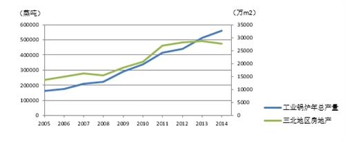圖4 歷年工業鍋爐年產量與三北地區房地產發展趨勢