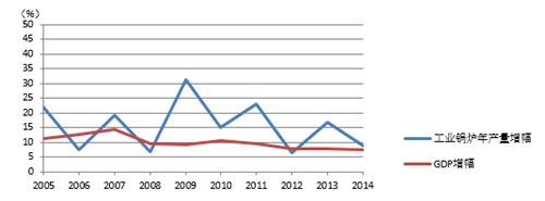 圖5 歷年工業鍋爐年產量增幅與GDP增幅趨勢?
